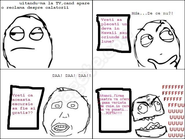 Uitandu-ma la TV, cand apare o reclama despre calatorii. Vreti sa plecati undeva in Hawai, sau oriunde altundeva? Vreti ca aceasta excursie sa fie pe gratis? Atunci, firma noastra va ofera o gama variata de cuie in care sa va puneti pofta!